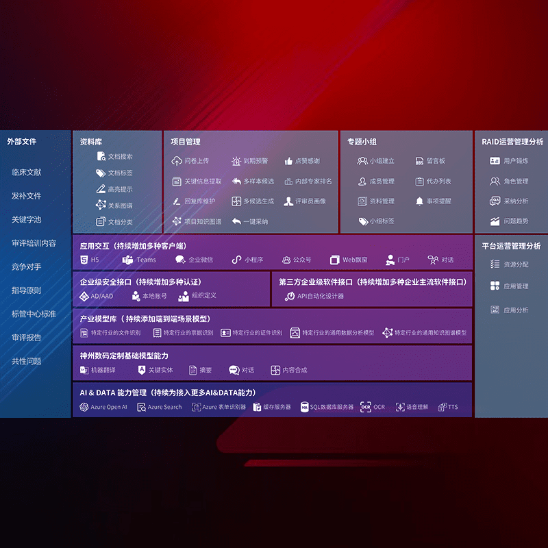 医疗器械产品上市前,,,要熟悉严格与繁复评审标准,,整理分析监管机构指导文件中的海量信息。。。企业急需一个智能化解决方案,,,,提升知识管理效率,,,,提高评审通过率,,以提升其市场竞争力。。。。